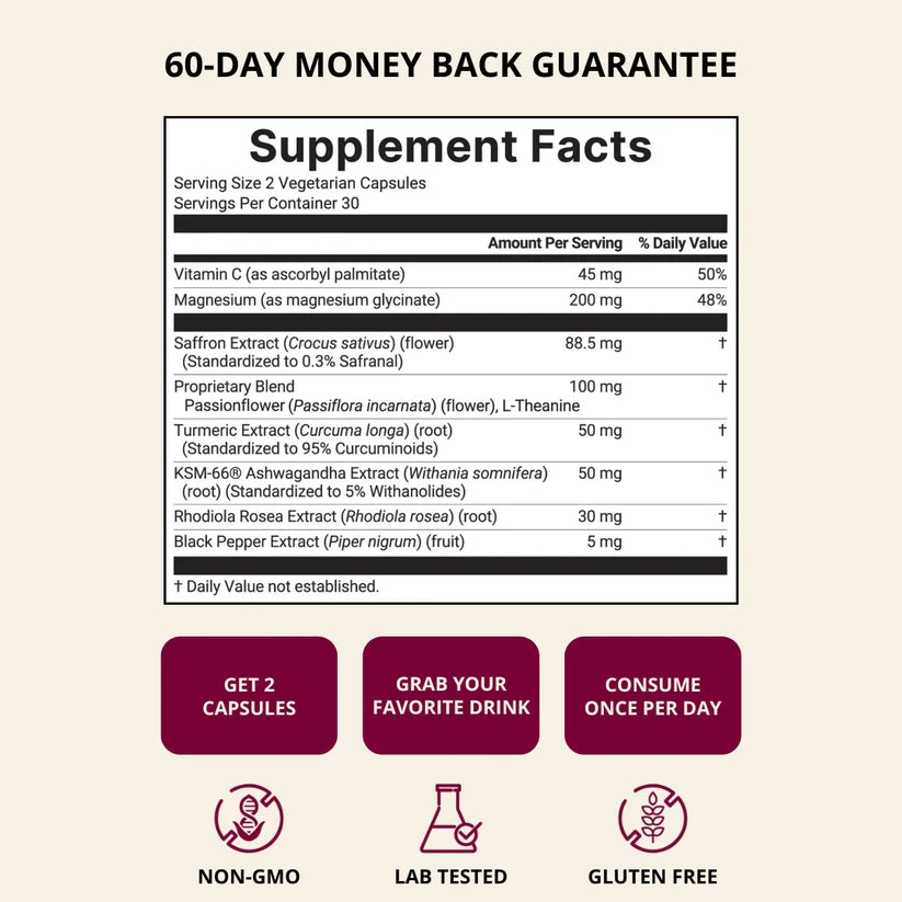 Try Saffron+ Advanced for 30 days. If you don't feel a clear boost in mood & focus, we'll refund every penny.
